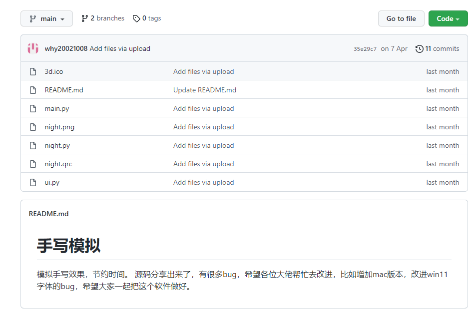 软件是开源的,作者为“人走茶凉le”,软件操作其实很简单,直接双击打开手写模拟.exe程序就可以进行使用。